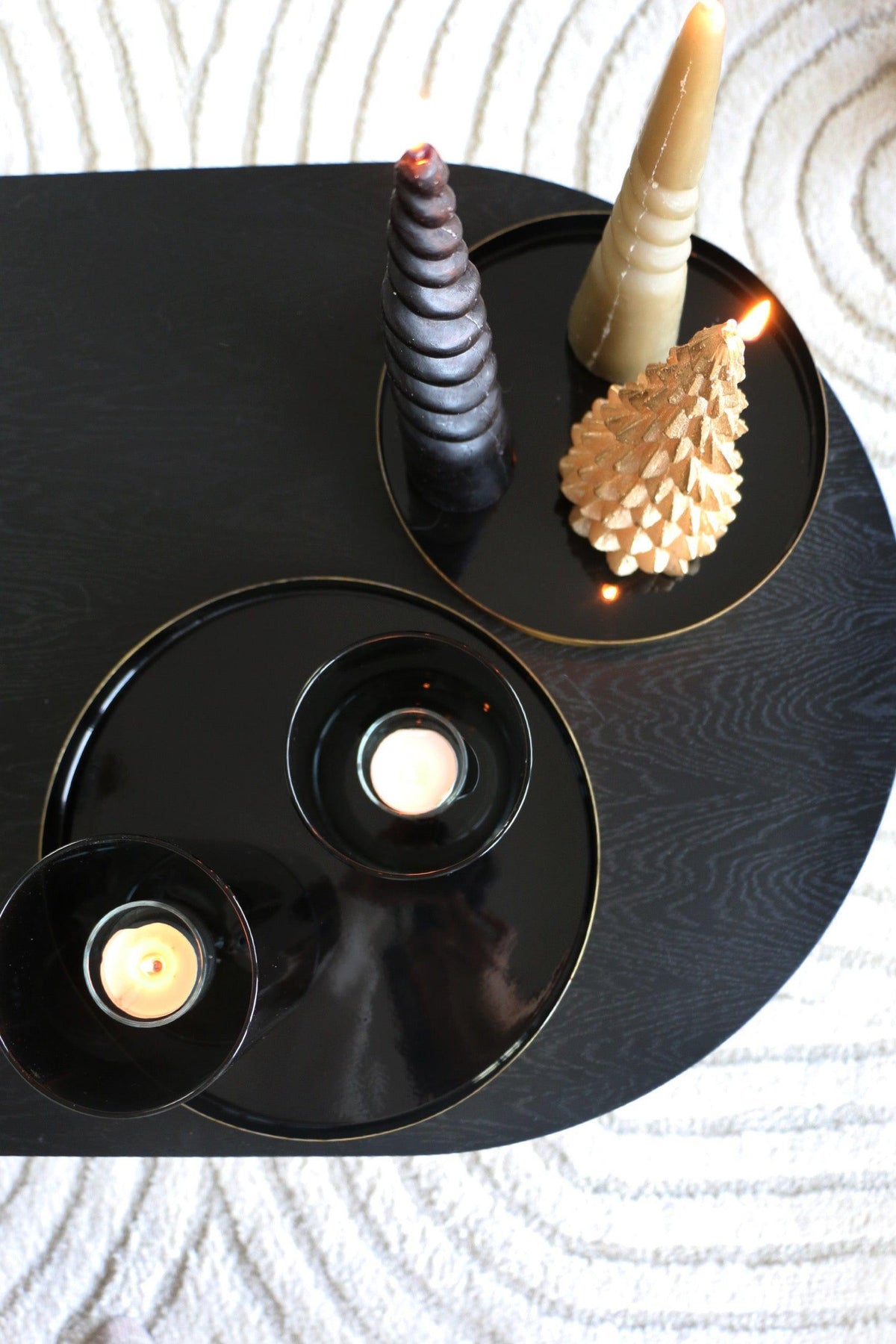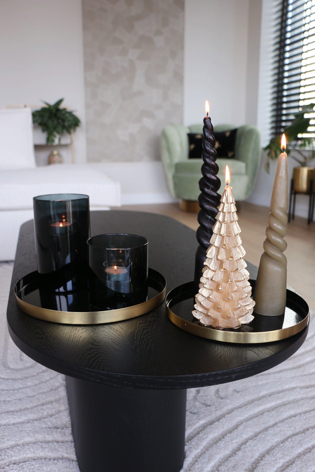 Deze set bestaat uit twee dienbladen. De binnenkant is glimmend zwart en de buitenkant goud. De dienbladen bieden een perfecte ondergrond voor al onze leuke kandelaars en waxinelichthouders!