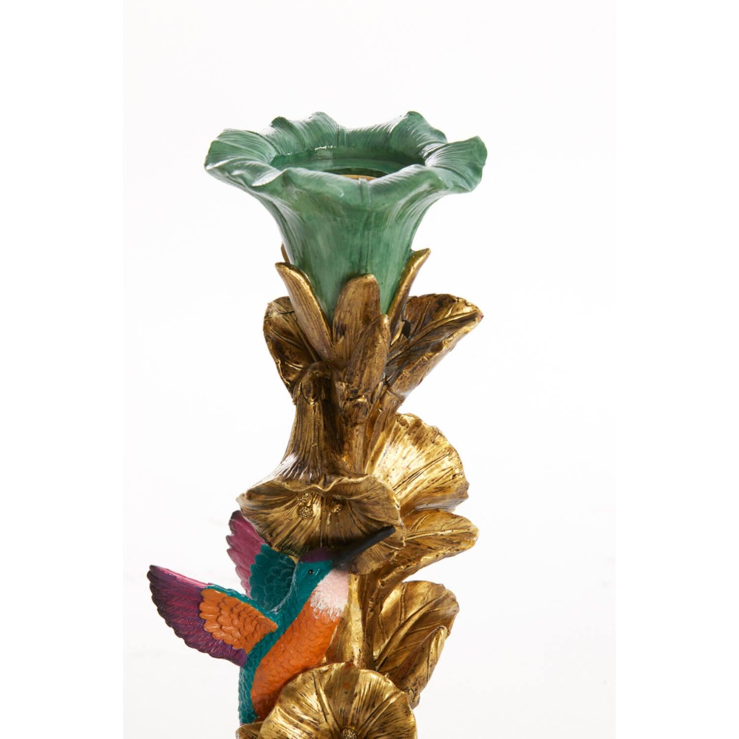 Vogel kandelaars zijn echt de trend van het moment. Deze kleurrijke kandelaar bevat gouden bloemen en een brons achtige kolibrie. Lekker opvallend en trendy! Product specificaties: