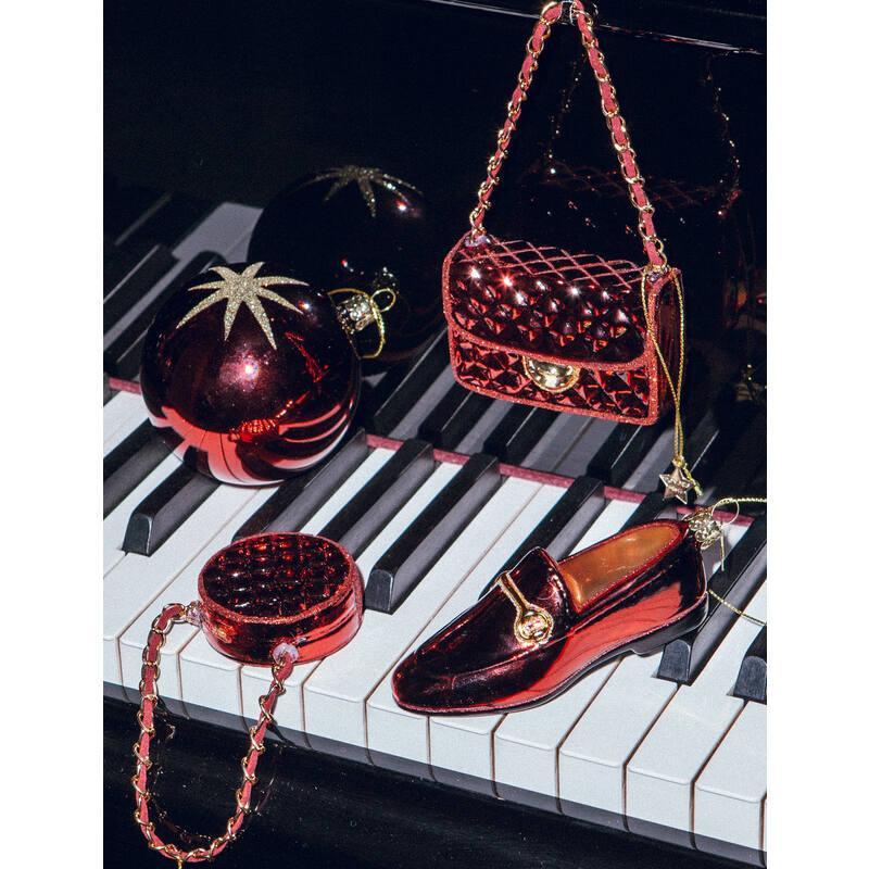 Hoe leuk is dit ornament van een Chanel tas bordeaux! Wat zal dit opvallen in de kerstboom! Fashion in de boom, hoe cool!
