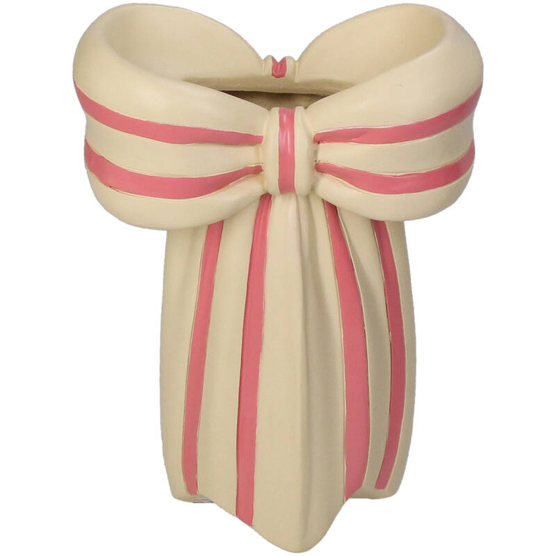 Geef jouw interieur een speelse én stijlvolle twist met deze unieke Vaas Strik in roze, vervaardigd uit hoogwaardig polyresin. Met haar compacte formaat van 7x14x19 cm past deze vaas moeiteloos op een dressoir, bijzettafel of open wandplank. De decoratieve strik en matte groene afwerking zorgen voor een charmante, eigentijdse uitstraling die perfect aansluit bij moderne en botanische woonstijlen.