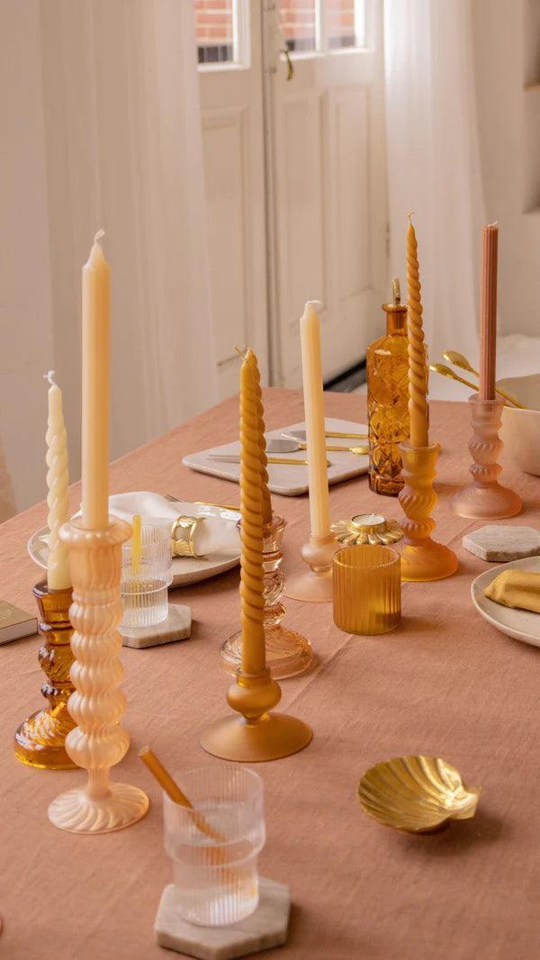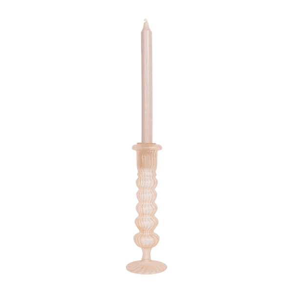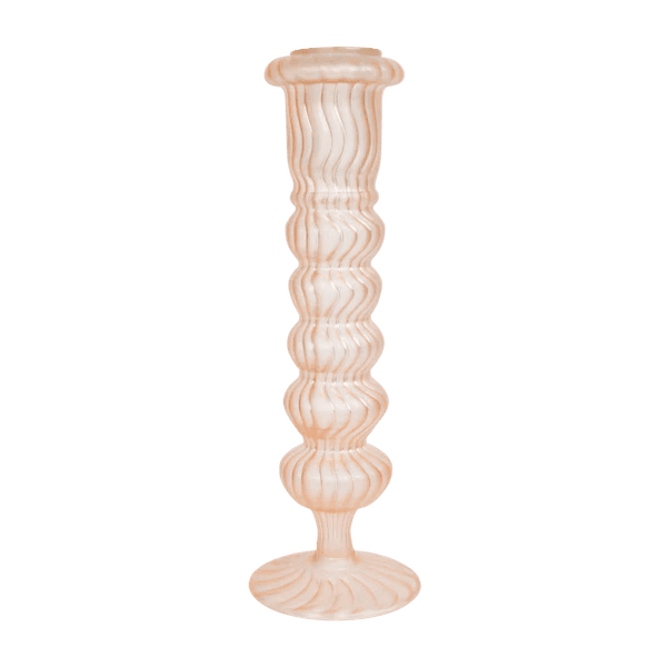De Frosted kandelaar geeft een instant wow-effect aan je interieur. De bijzonder mooie vorm van het mondgeblazen matglas en de speelse en levendige kleuren doen denken aan die warme laatste zonnestralen op een nazomeravond.