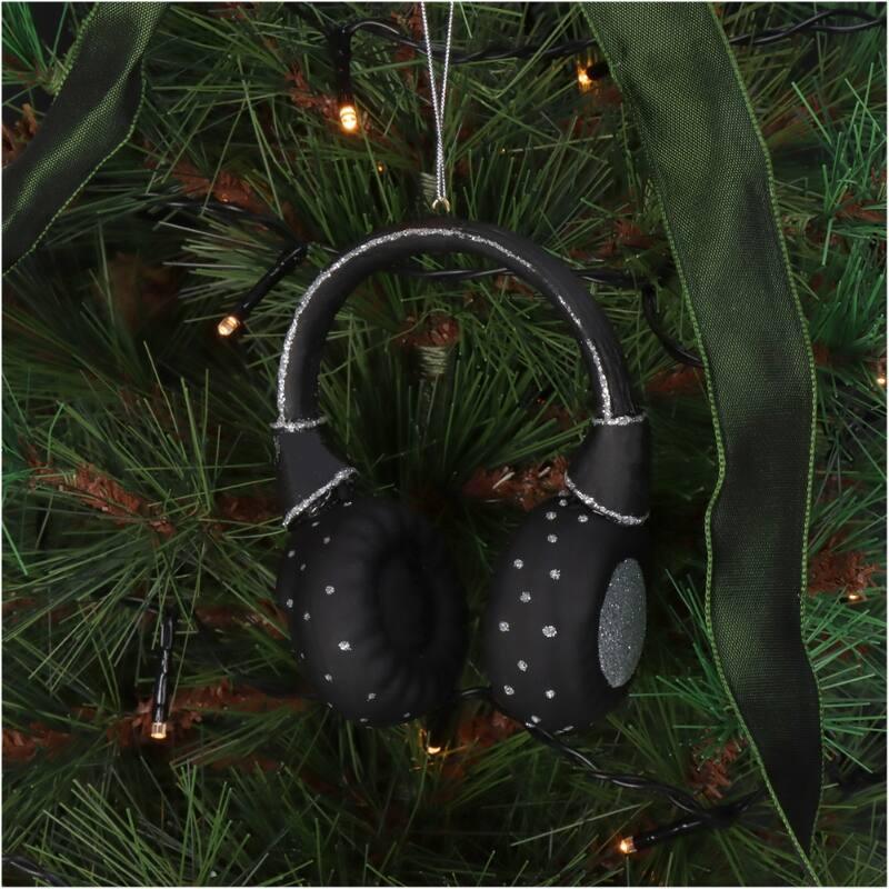 Wat een gave kersthanger van een zwarte koptelefoon!