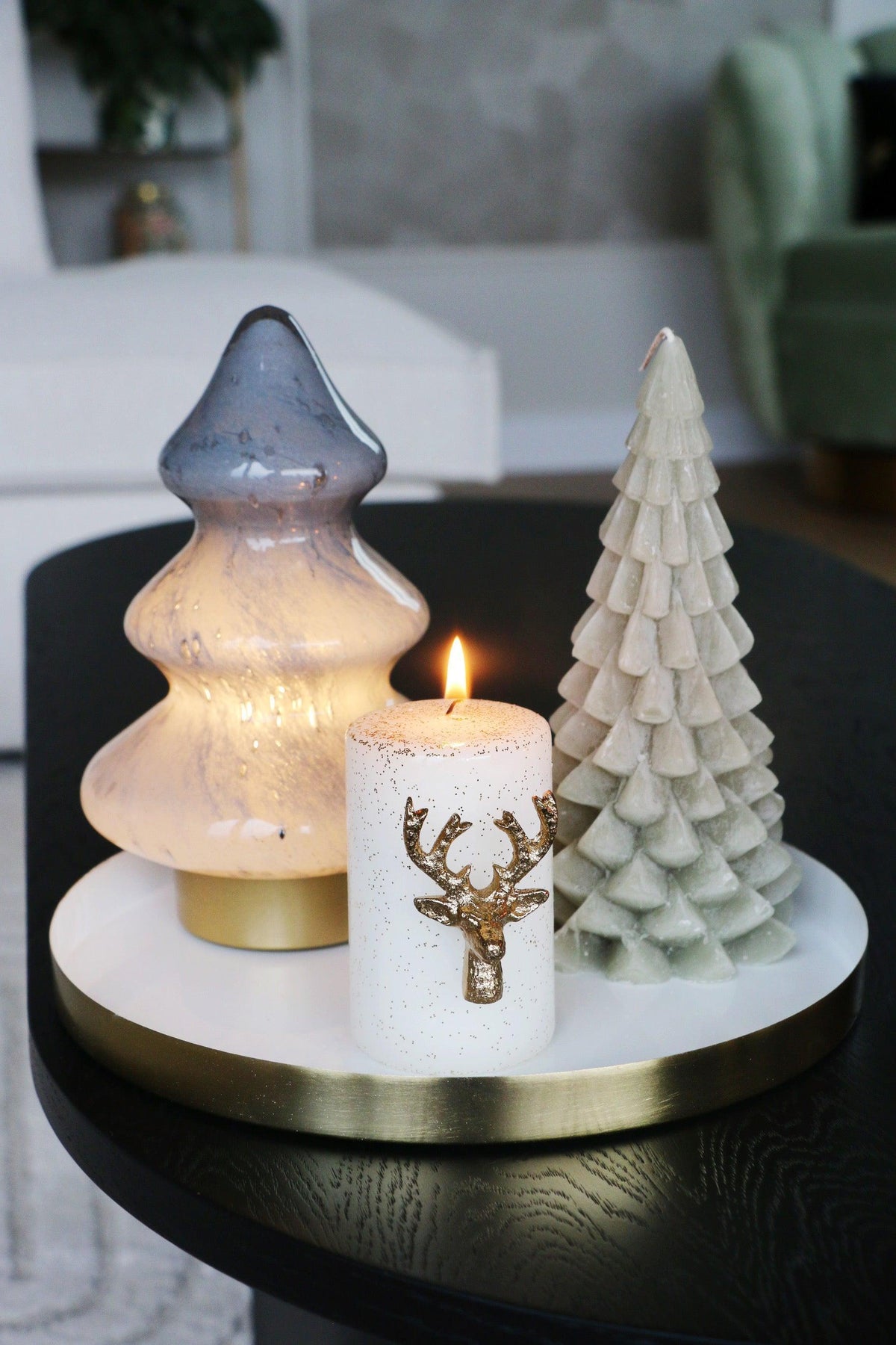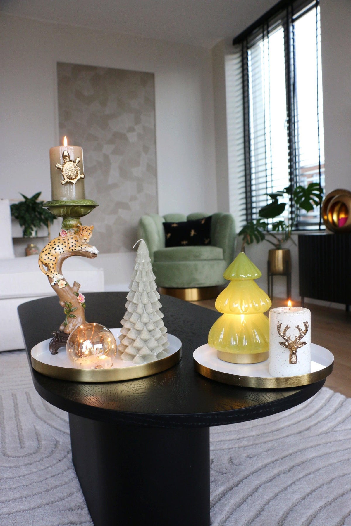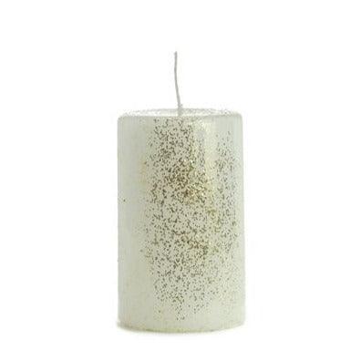 Deze hoogglans stompkaars heeft een witte kleur en heeft allemaal gouden glitters. Hij past dus perfect bij deze tijd voor het jaar. Ook leuk om te combineren met onze kaarsenpinnen