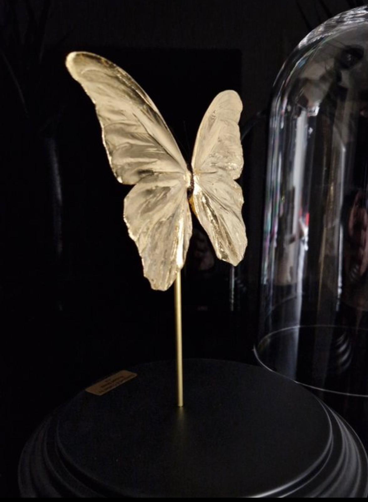 Unieke vlinderkoepel met 23-karaats bladgoud vervaardigde Morpho Didius-vlinder van de beste A1 kwaliteit.