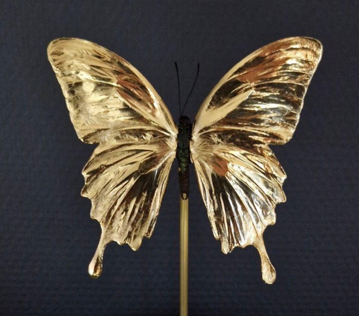 Unieke vlinderkoepel met 23-karaats bladgoud vervaardigde Ulysses-vlinder van de beste A1 kwaliteit.