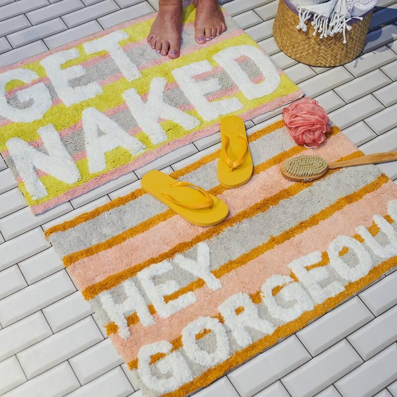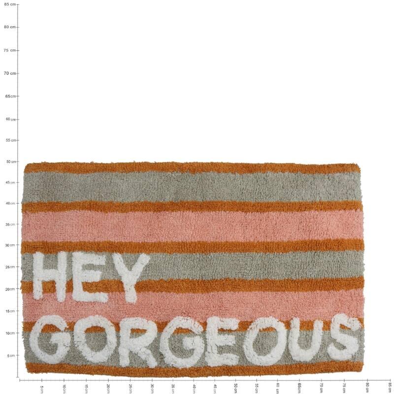Hoe leuk is deze badmat met de tekst Gorgeous?